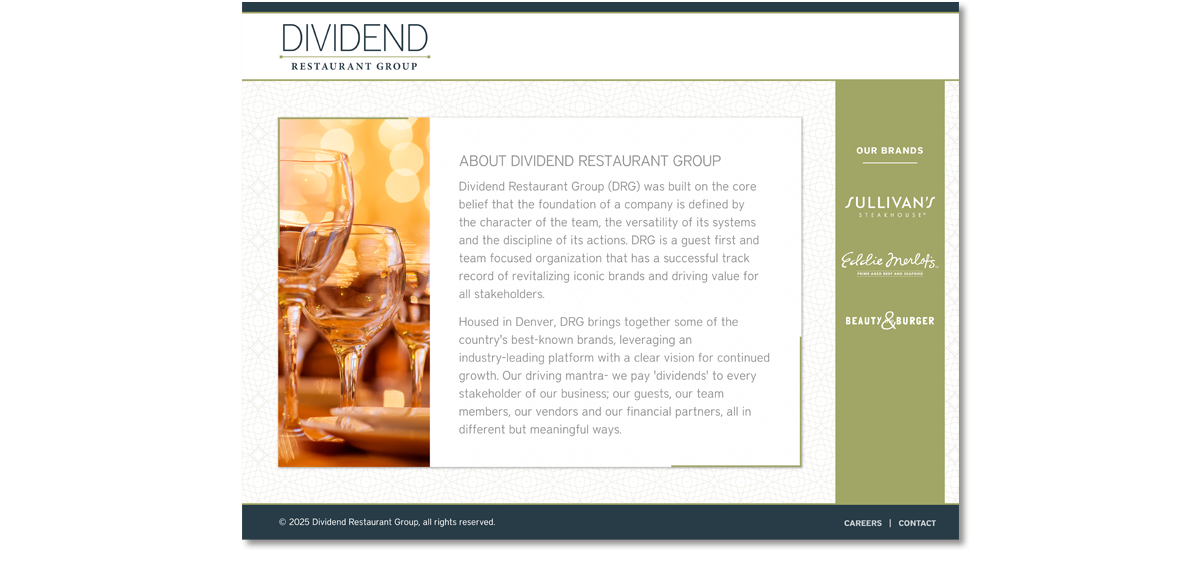 Designed the home/landing page for their developers to carry out throughout the site. Partner restaurant names are hyperlinks.